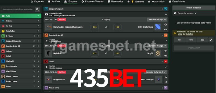 O 435bet oferece uma grande seleção de opções de apostas em e-sports com probabilidades competitivas